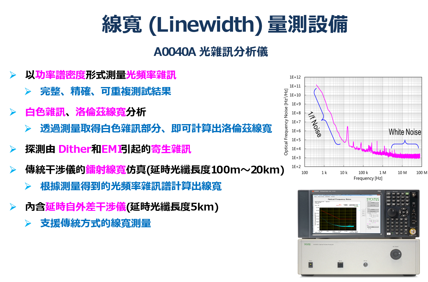 •衡量指標:以赫茲 (𝐻𝑧) 作為單位。線寬越窄,表示光的純度越高,越接近單一波長,代表光的穩定性越好。