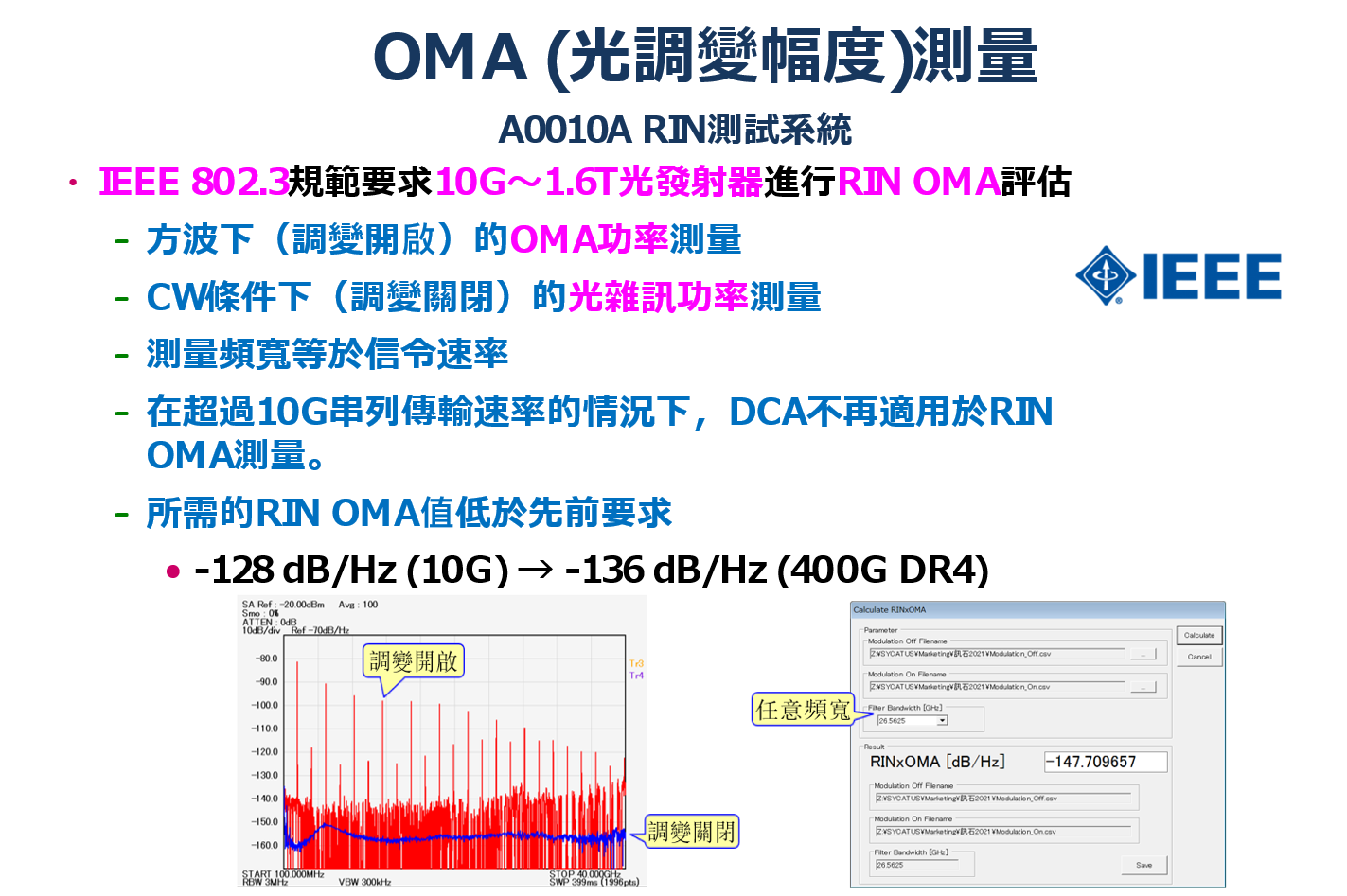 ■ RIN (相對強度雜訊) & OMA (光調變幅度) & 線寬 (Linewidth)