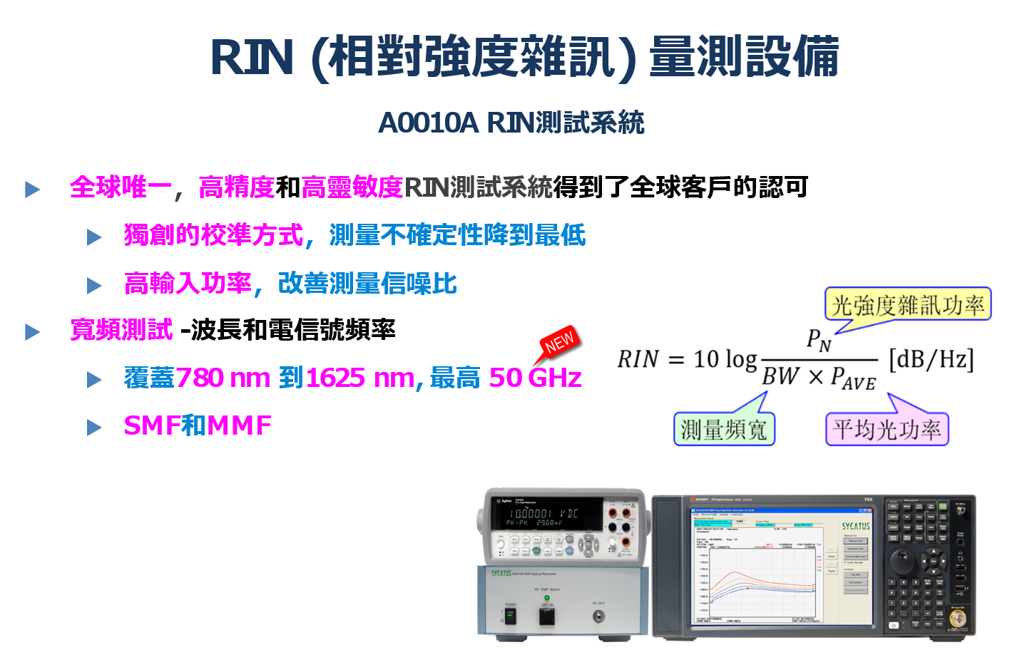 •重要性:在高速、多級調變光通信中,低 RIN 是確保傳輸品質和容量的關鍵。